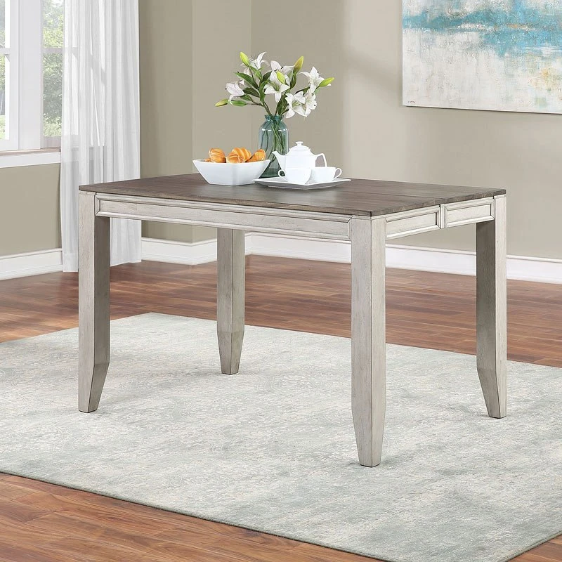 - OverviewThe Abacus Dining Room Collection by Steve Silver Furniture represents relaxed casual styling in two-tone smoky alabaster and smoky honey finish. The transitional style works well with farmhouse, contemporary or transitional styles and the neutral finish complements many interiors.
