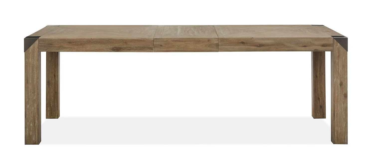 - OverviewIndustrial style gets a light and airy vibe with the soft organic color palette of the Ainsley Dining Room Collection by Magnussen, featuring a tactile Cerused Khaki finish with a subtle gray wash on exotic, elegant Acacia Solids and Veneers. Metal brackets on the edges of the rectangular Parson’s leg Dining Table in an Industrial Bronze finish. Create an uplifting setting in soothing natural colors and textures for memorable meals with the Ainsley Collection.