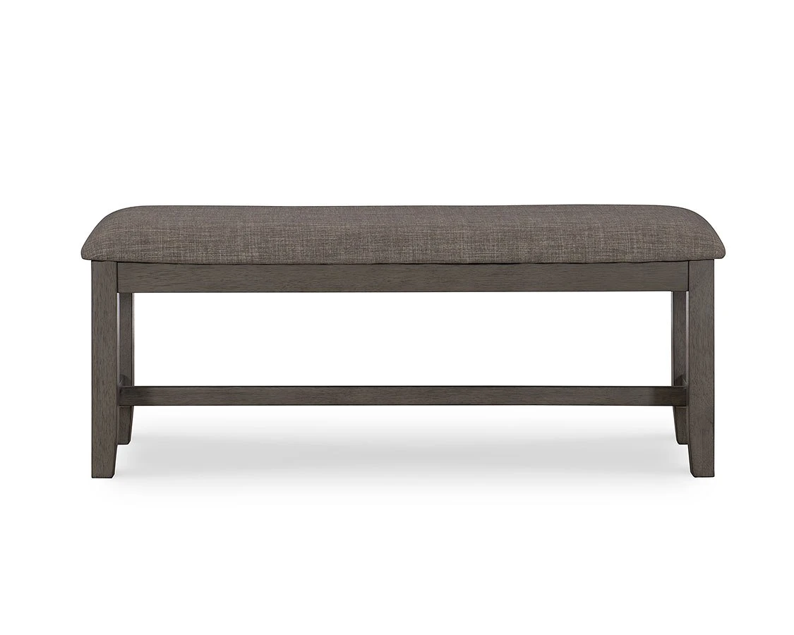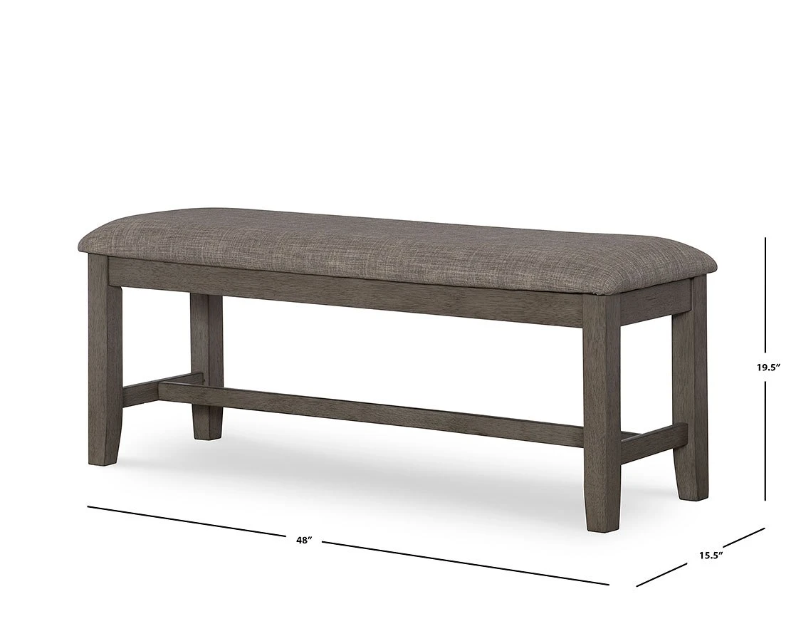 - OverviewPull up a patch at your dining table on this traditionally styled upholstered Allston Park Bench by Home Furniture Outfitters. This bench will spice up the monotony of a standard table and chairs combination. Or place at the end of your bed for a comfy spot to lace up your shoes in the morning. The possibilities are endless in your space.