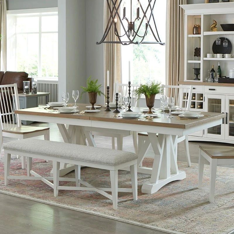 Seats 6-8 comfortably and up to 10 with included 24″ leaf