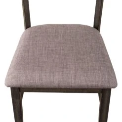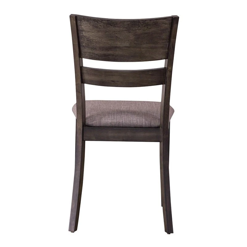 - OverviewSit in comfort and style with the Anglewood Slat Back Upholstered Side Chair by Liberty Furniture. Crafted of rubberwood solids, this piece features a dark umber brown finish, harbor gray linen upholstery on the seat, and nylon chair glides to protect your flooring. Anglewood incorporates design elements from a variety of centuries, which allows homeowners to feel comfortable and elegant at the same time. The transitional style features warm, rich colors that are very inviting.
