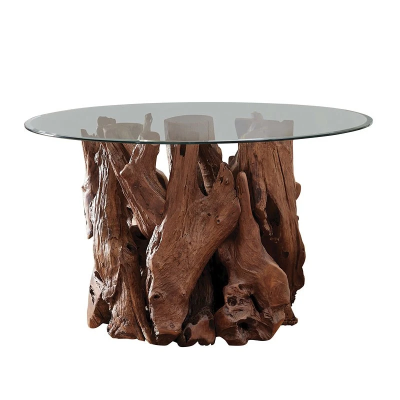 - OverviewSolid teak branches fallen naturally in the forests of Indonesia were carefully joined to create this realistic root table. Select your choice of either 54″ or 60″ diameter round tempered glass tops.