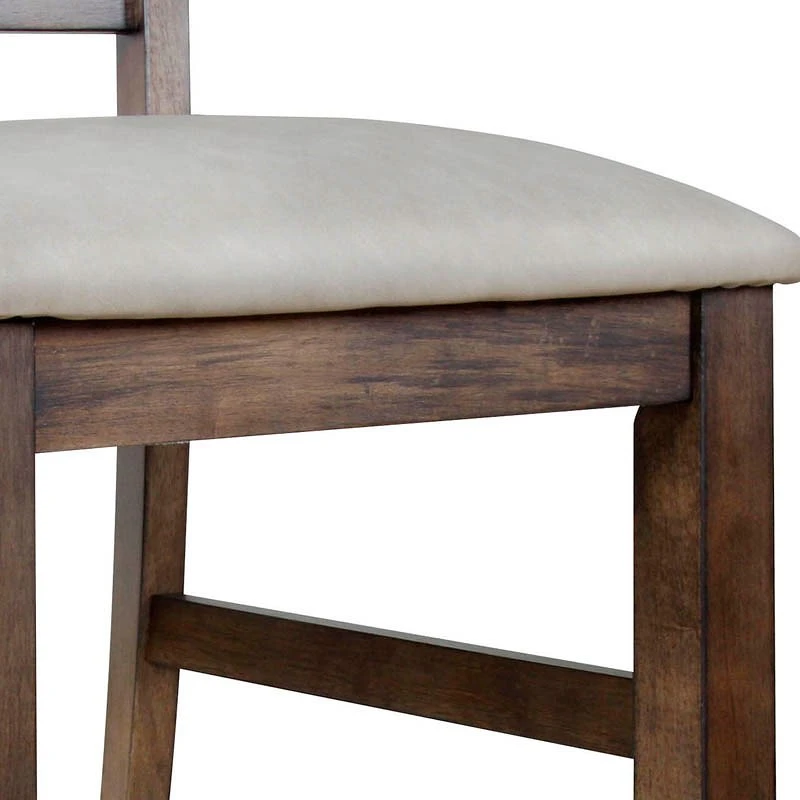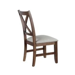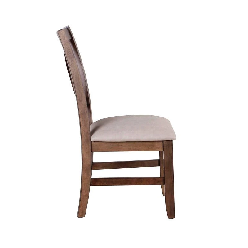 - OverviewThis solid wood Astoria Dining Chair by Steve Silver Furniture has a mix of distressed wood and leatherette that fits the bill for your rustic dining area. Crafted from Rubberwood solids in a warm Mocha finish, the chair is upholstered in an oatmeal leatherette that is easy to match. The Criss-cross back silhouette is shaped for comfort and combines with tapered legs to add a level of refinement that enhances the rustic style of the chair. A foam-filled seat adds support and makes sure guests stay for the conversation after the meal.