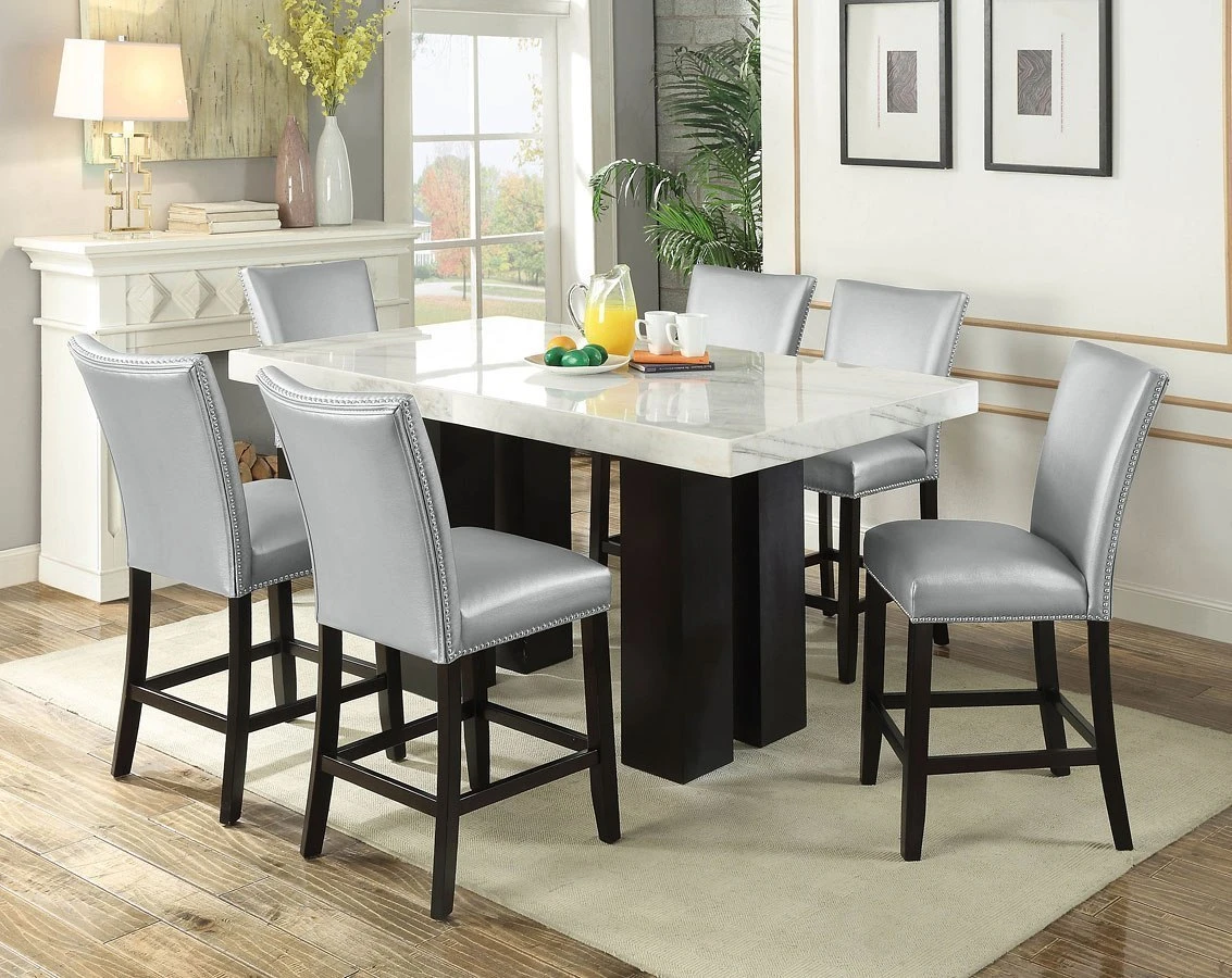 - Default Set Includes1 x Camila Rectangular Counter Height Table 4 x Camila Counter Height Chair (Silver PU)