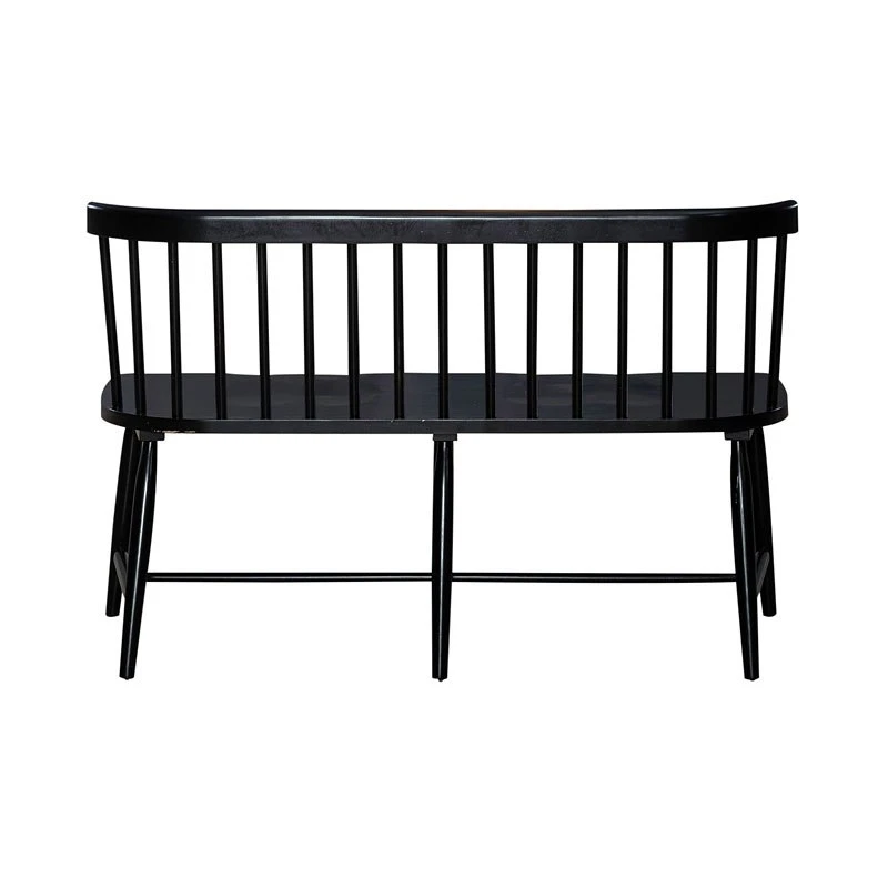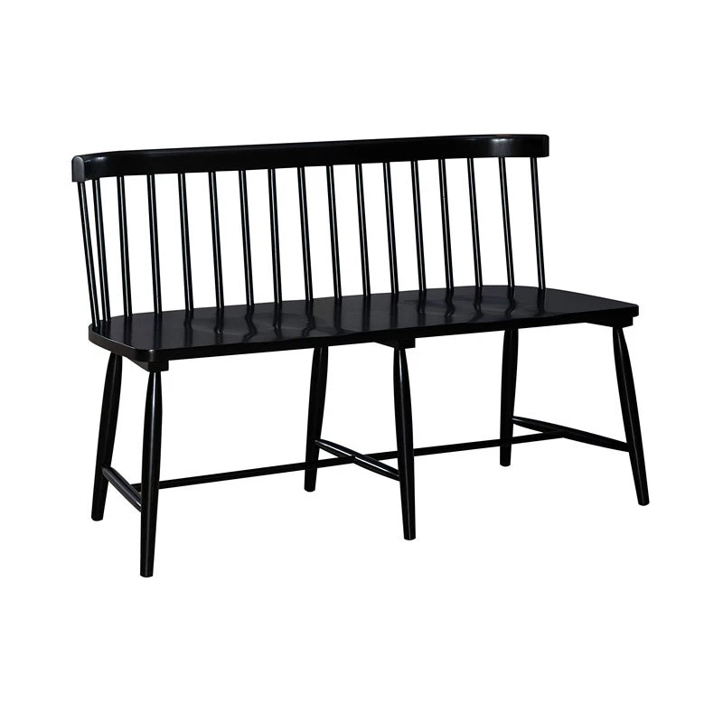 - OverviewSit and relax with the Capeside Cottage Spindle Back Dining Bench by Liberty Furniture. Crafted with excellence using rubberwood solids, this bench features a Royal Black finish. The bench has a sturdy spindle back that adds a touch of modern to a classic. The saddle-shaped seat adds comfort while the splayed-turned legs add stability. Nylon chair glides are added to protect your flooring. If you live in the country, reside near the coast, or wish you did, the Coastal Farmhouse feel of the Capeside Cottage spindle back dining bench can help make your home’s desired look complete.