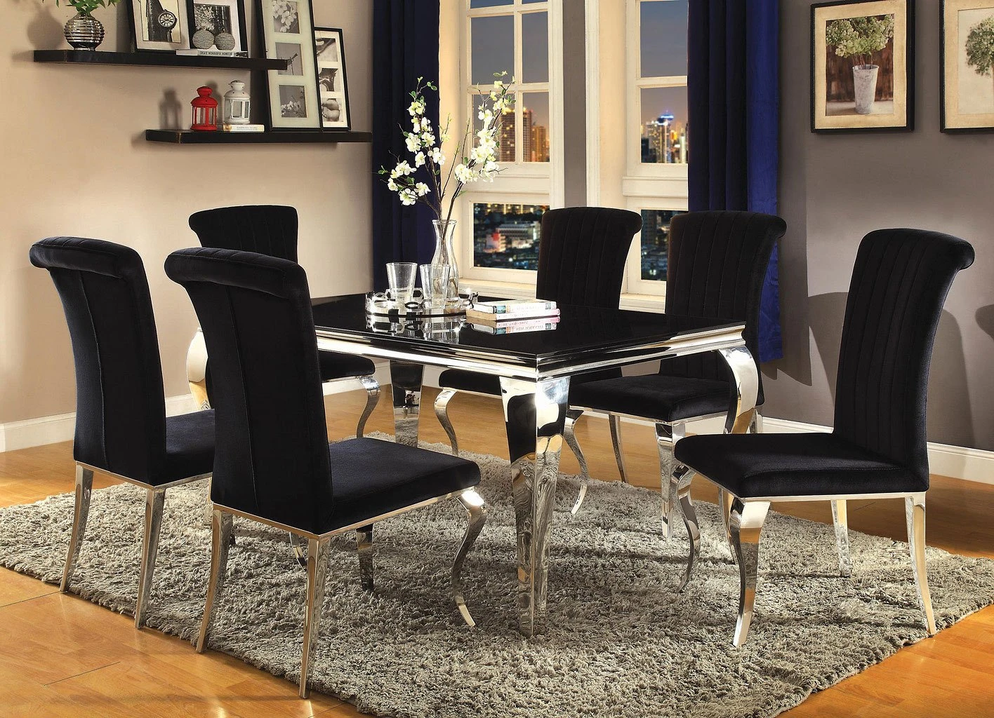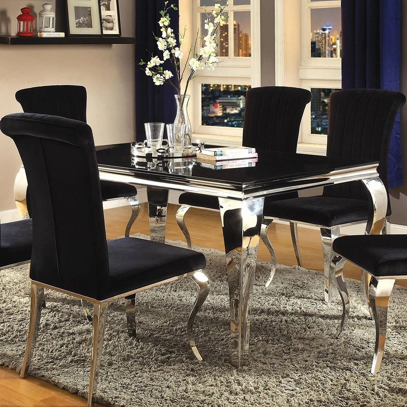 - OverviewThe ultimate Hollywood Glam look for your home can be created with our stunning Carone Rectangular Dining Room Set by Coaster Furniture. This collection is perfect for formal dining area or to dress up your everyday dining.