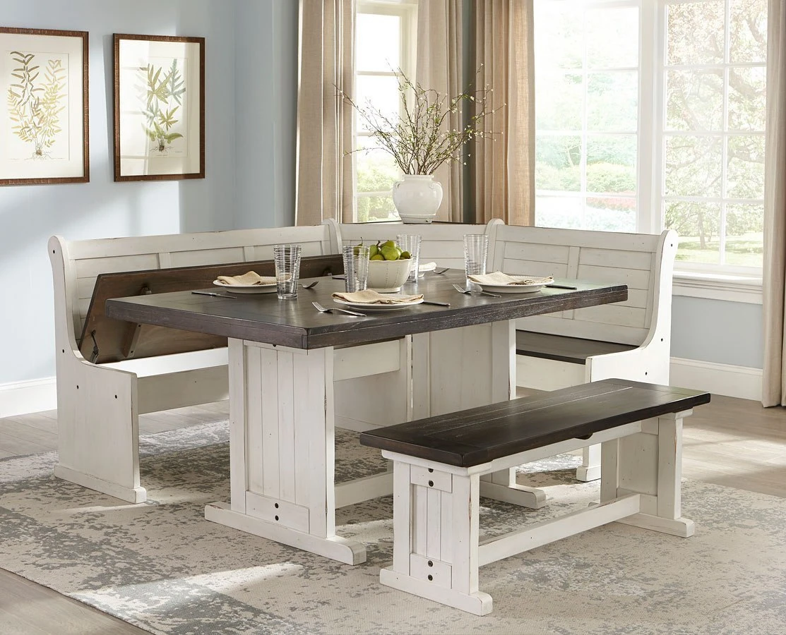 - Default Set Includes1 x Carriage House Breakfast Table 1 x Carriage House Corner Bench