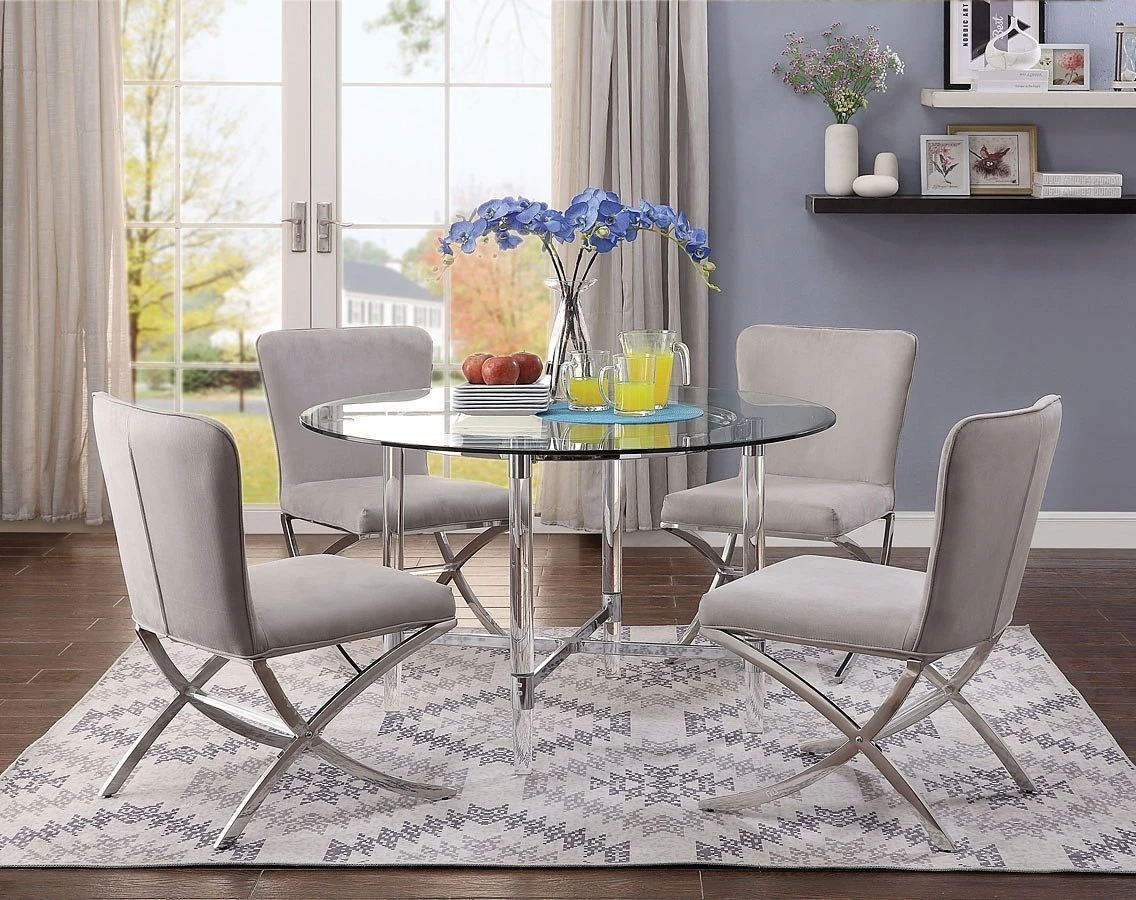 Chrome metal “X” shape chair base - DepartmentDining Room Sets