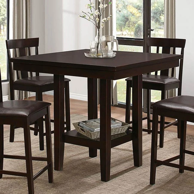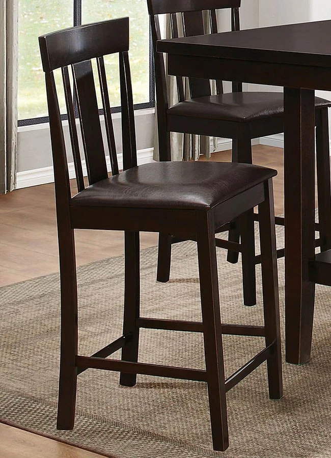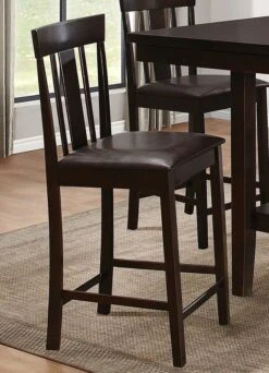 - OverviewAt home in your casual dining space or perhaps in your recreation room, the Diego Dining Room Set by Homelegance serves as a casual gathering spot to relax and enjoy a meal, or to catch up with friends and family. The birch veneers of the collection feature a versatile espresso finish. The pedestal display base allows for open storage. The matching chairs feature wooden vertical slat backs and padded seats with black bi-cast vinyl covering.