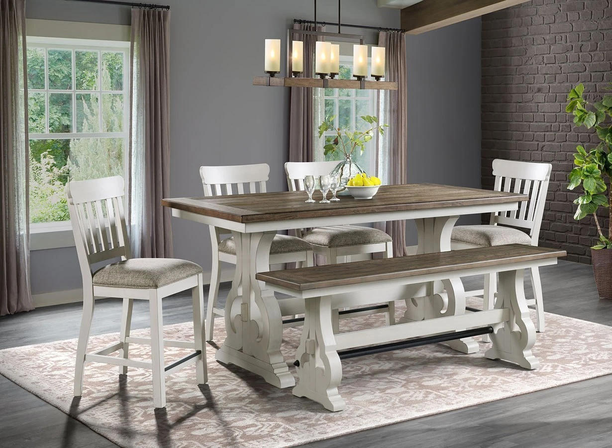 - Default Set Includes1 x Drake Counter Height Dining Table 2 x Drake Counter Height Slat Back Barstool 2 x Drake Counter Height Backless Stool 1 x Drake Counter Height Backless Bench