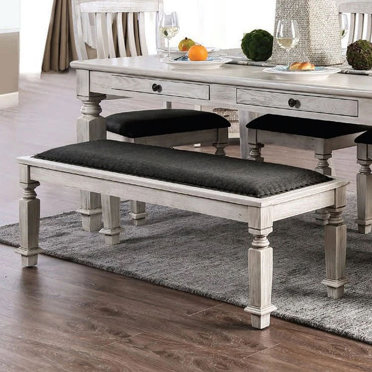 - OverviewDine in rustic elegance with this heirloom-inspired Georgia Dining Room Collection by Furniture of America. The antique finish of the entire collection draws attention to the sturdy solid wood framework while providing the necessary support for a worry-free dinner setting. Classically shaped legs create a traditional visual. The corresponding chairs and bench feature composed gray fabric.