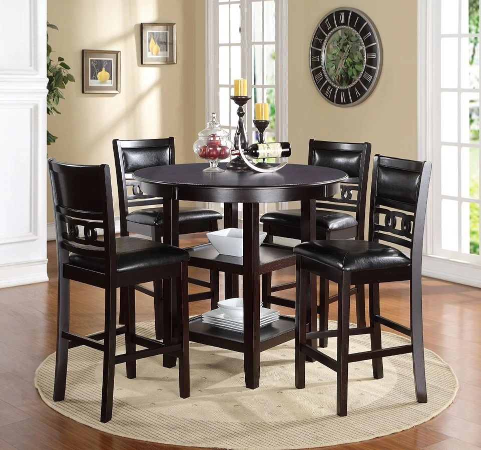 - OverviewSimple elegance perfect for smaller spaces. The Gia Collection by New Classic Furniture rich ebony finish, thoughtful design and sophisticated styling is an attractive addition to a dining room.