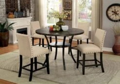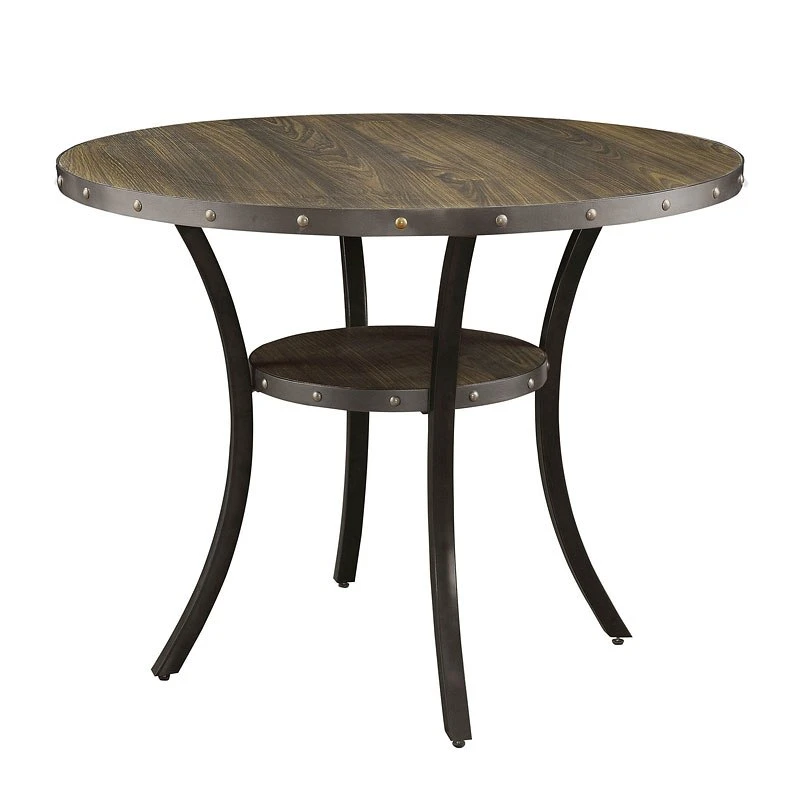 - OverviewStunning nailhead accents bring extra appeal to this transitional Kaitlin Counter Height Dining Room Collection by Furniture of America, creating the perfect setting for a warm and inviting meal. The round tabletop ensures there ample space to lay out place settings while the lower shelf offers room for display and storage. The linen upholstery of the chairs offers added comfort to the design to provide extra enjoyment to the experience. With its long curved legs and detailed wood grain, the table works in tandem with the chairs to easily fit for your transitional dining space.