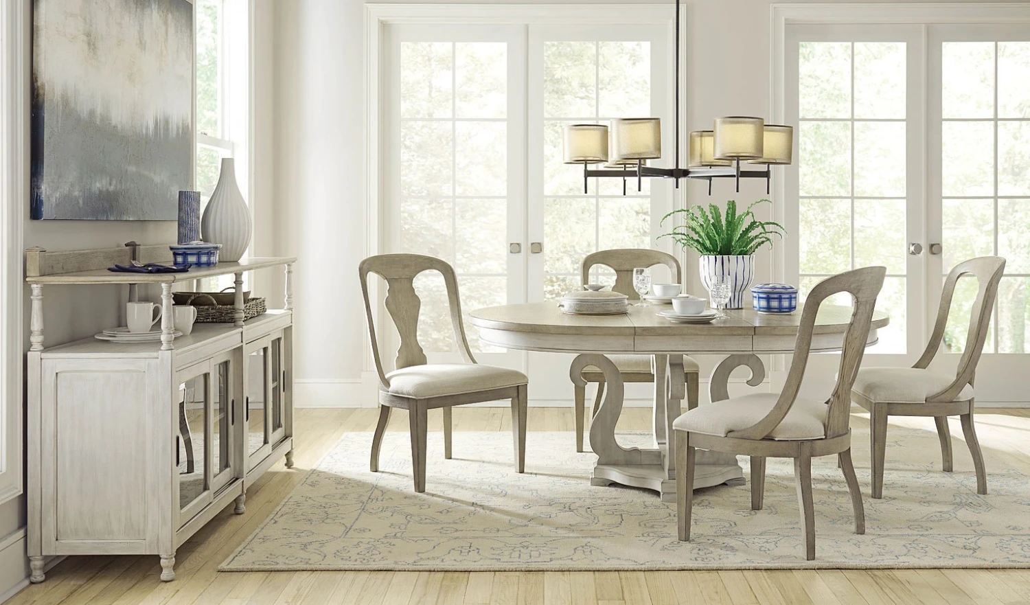 - OverviewThe Litchfield Dining Room Collection by American Drew Furniture was inspired by the magic and lure of a seaside cottage. It is beautiful yet practical and features thick oak veneers in sunwashed finishes and natural cane in a basket weave pattern. Many items were inspired by antiques found in Cornwall and other coastal villages in the UK. Litchfield is ideal if you seek a relaxed, comfortable, lifestyle whether it be on the water’s edge or miles from the coast.