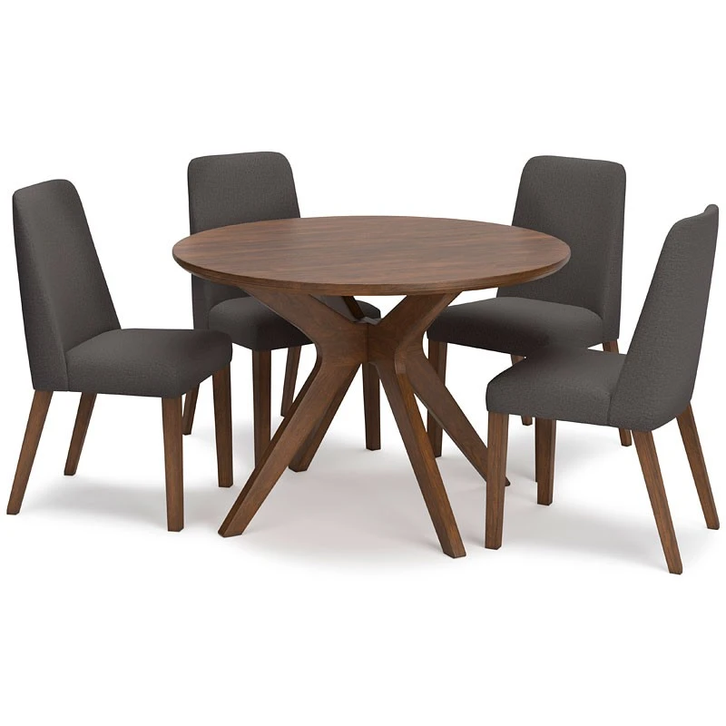 - Default Set Includes1 x Lyncott Round Dining Table 4 x Lyncott Charcoal Side Chair