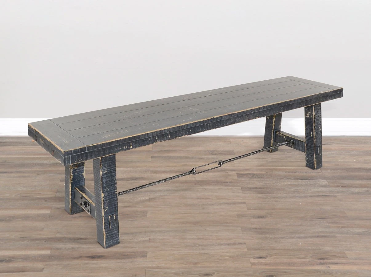 - OverviewThis sturdy Marina Dining Bench by Sunny Designs was built with distressed mahogany solids. The turnbuckle accents add a rustic touch.