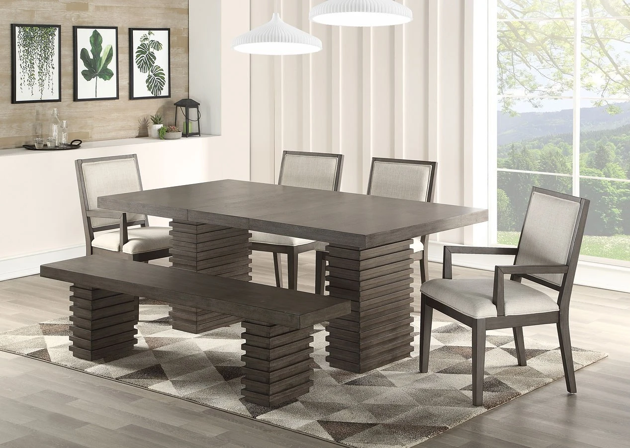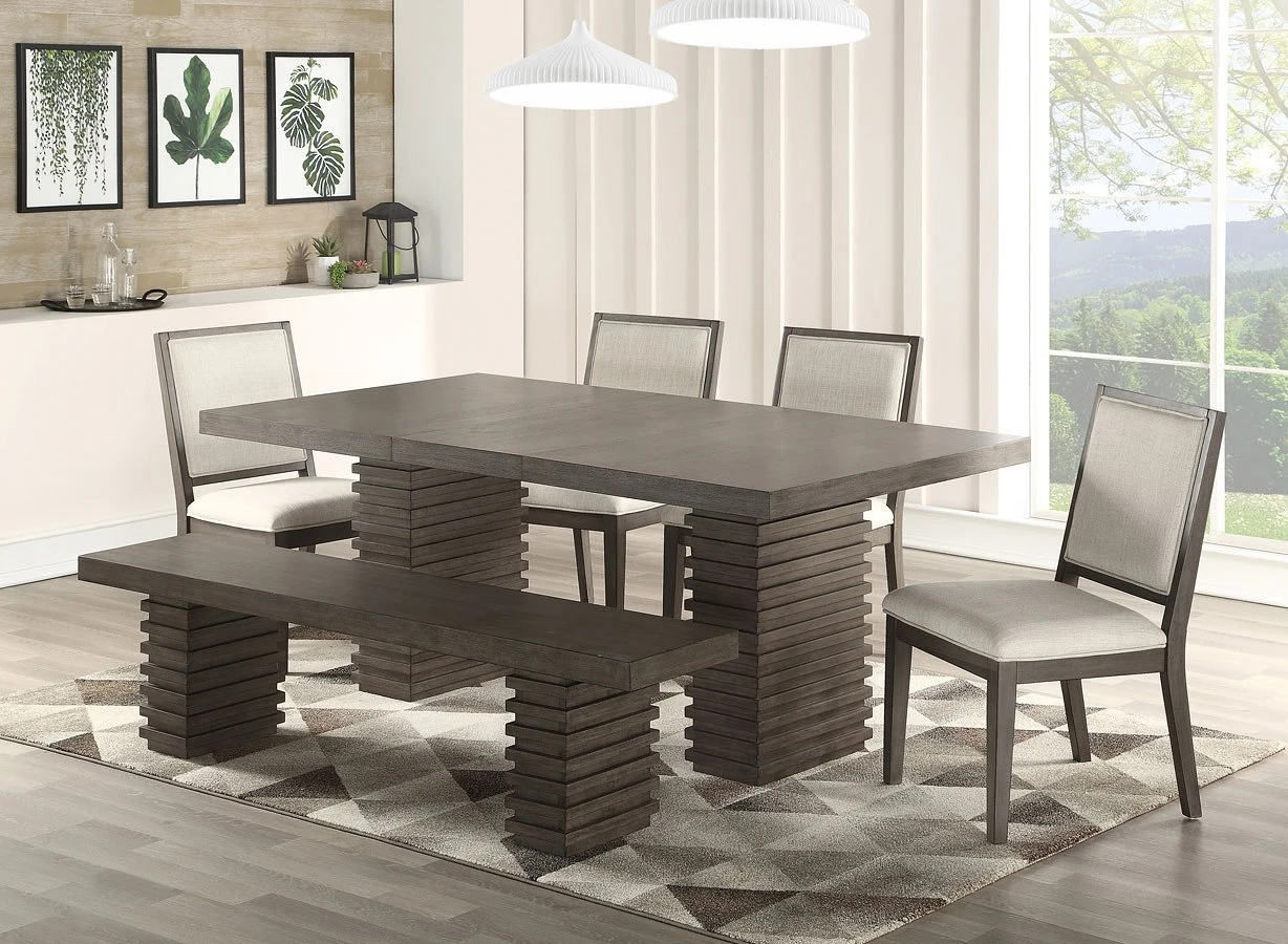 - Default Set Includes1 x Mila Dining Table 2 x Mila Side Chair 1 x Mila Bench
