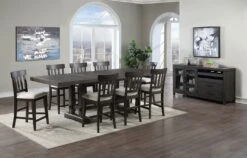- OverviewA grandly scaled dining collection with modern farmhouse styling, Napa Dining Room Collection by Steve Silver Furniture features a dining table with ample room for all visitors. The table has a beautiful plank-effect top and comes with two 18-inch leaves that expand it to a full 108-inches for seating of up to ten people. The double pedestal base has exposed tenons and pairs gracefully with the schoolhouse upholstered seat Side Chair for a group that is both stylish and comfortable.