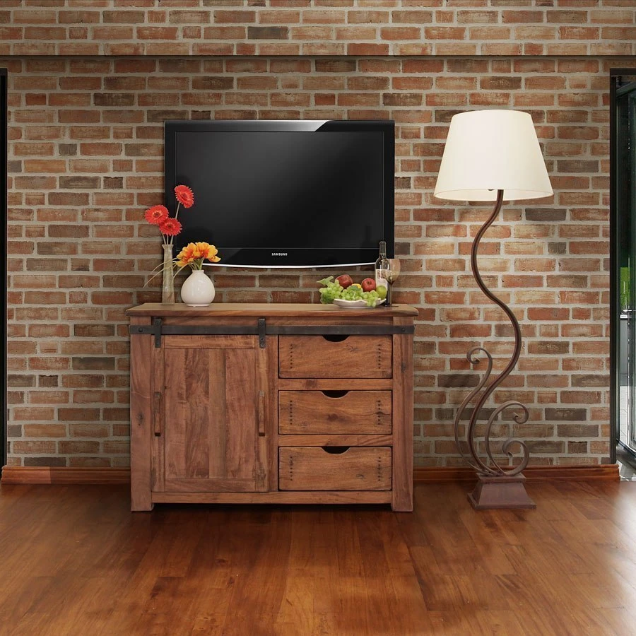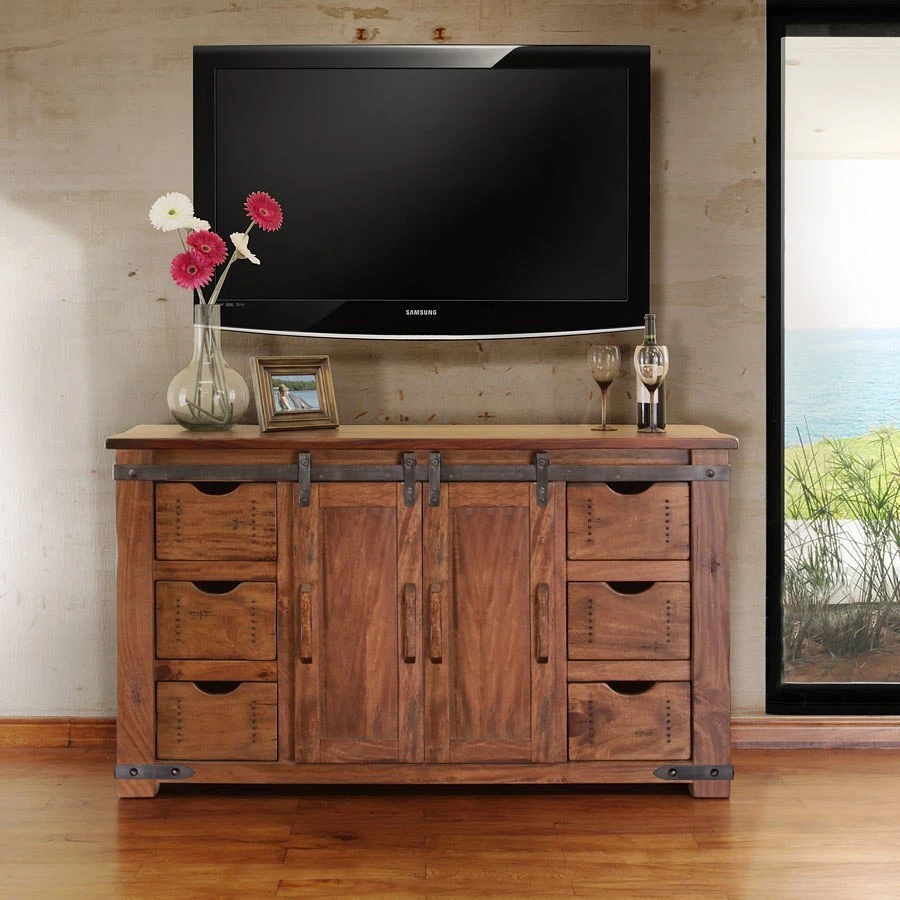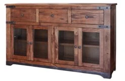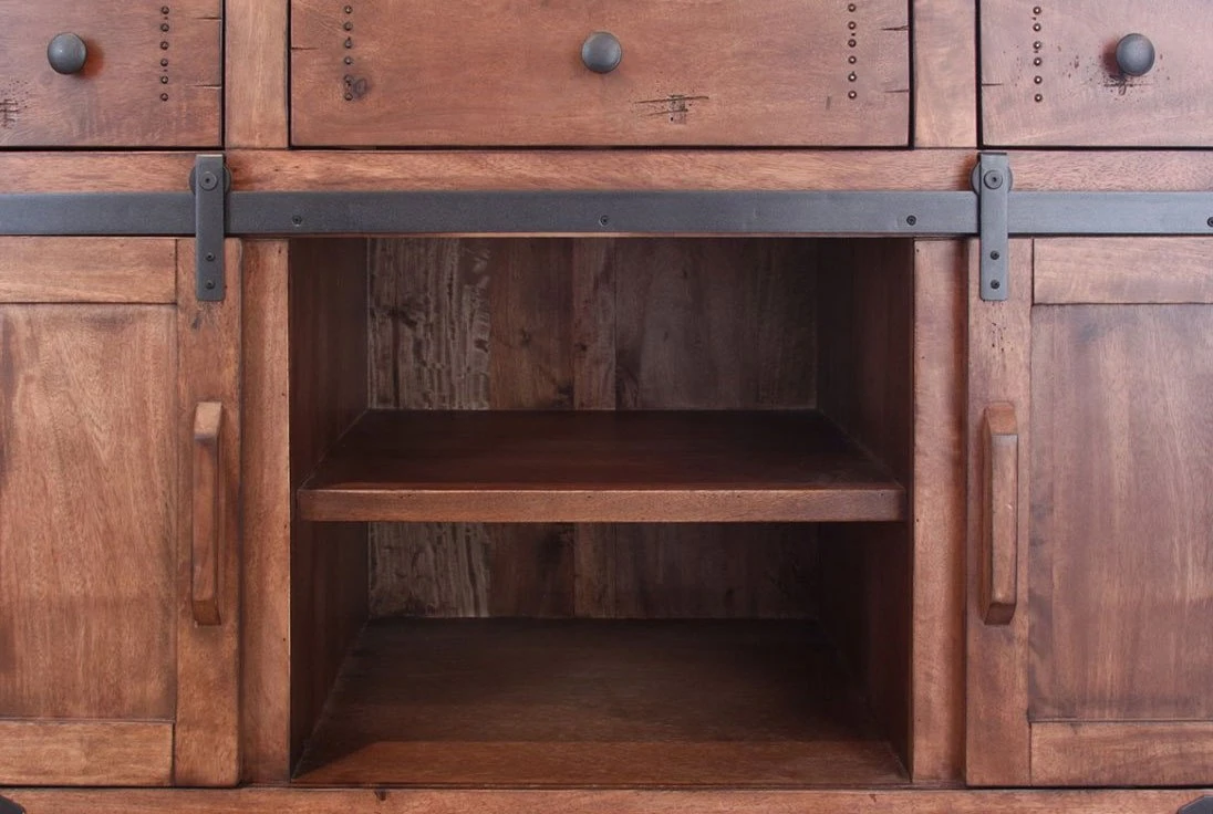 Seven-step, stain finish on rest of case piece featuring mango wood add depth to wood grain