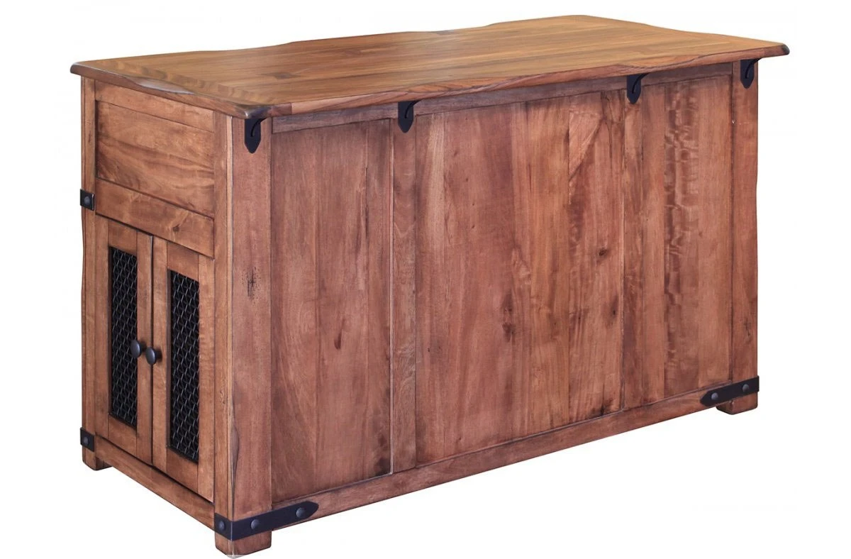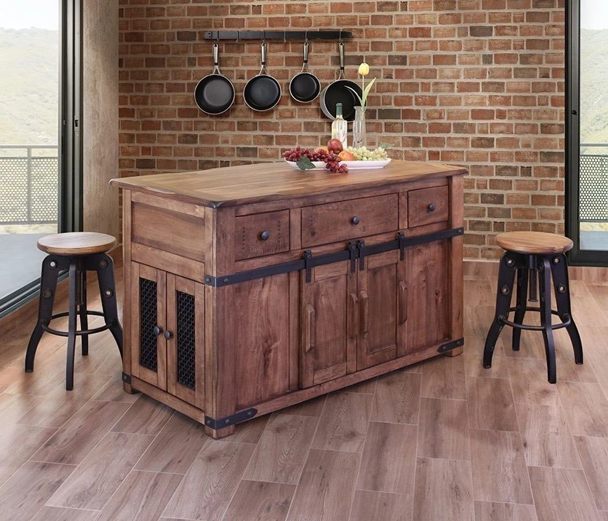 - OverviewThis gorgeous Parota Kitchen Island Set from the Parota Collection by International Furniture Direct will fit perfectly in your home and lifestyle. Each piece is made to replicate antique/reclaimed wood parts and pieces, which means each item is unique. To provide this look, cracks, knots, knot-holes, splits and uneven rubbed edges are purposely left intact from original pieces of wood and in many instances additional man-made distressing is given to emphasize its rustic charm. These are not product defects but unique features that add beauty and character. Accordingly, expansion or shrinkage, small cracks and wood imperfection are inherent qualities of our product. Variation is what makes each piece unique, natural and exclusive.