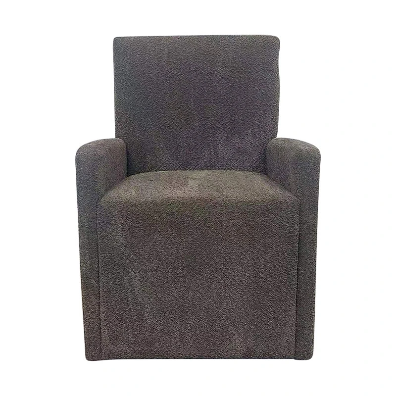 - OverviewThis generously sized, fully upholstered Pure Modern Armchair by Parker House is hand tailored in a luxurious boucle fabric and makes a bold fashion statement. Designed to be mobile, this chair moves easily on casters, so the conversation never has to end. Whether you’re playing games, dining with friends and family, or just relaxing, this chair is designed to provide you with comfort and style. This chair is upholstered in a durable, 100-percent polyester high-performance fabric, designed for cleanability and everyday living. So you can sit back, relax, and enjoy your space without worrying about spills or stains. With its comfortable, stylish design, the Upholstered Caster Chair is the perfect choice for game or dining tables.