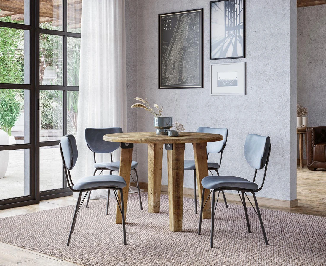 - Default Set Includes1 x Reclamation Round Dining Table 4 x Owen Slate Side Chair