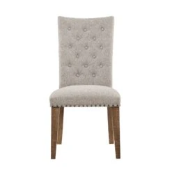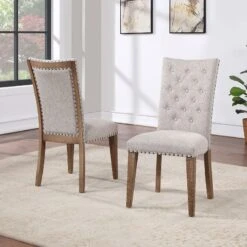 Button-tufted canvas dining chair with oil-rubbed dark bronze nailhead trim and wood-rimmed back is as gorgeous at or away from the table - DepartmentDining Room Sets