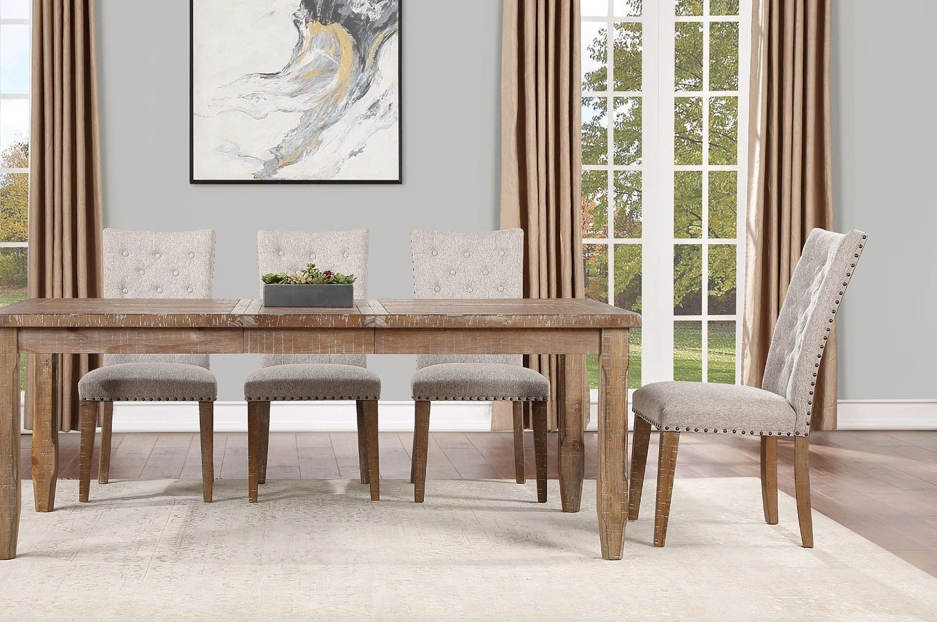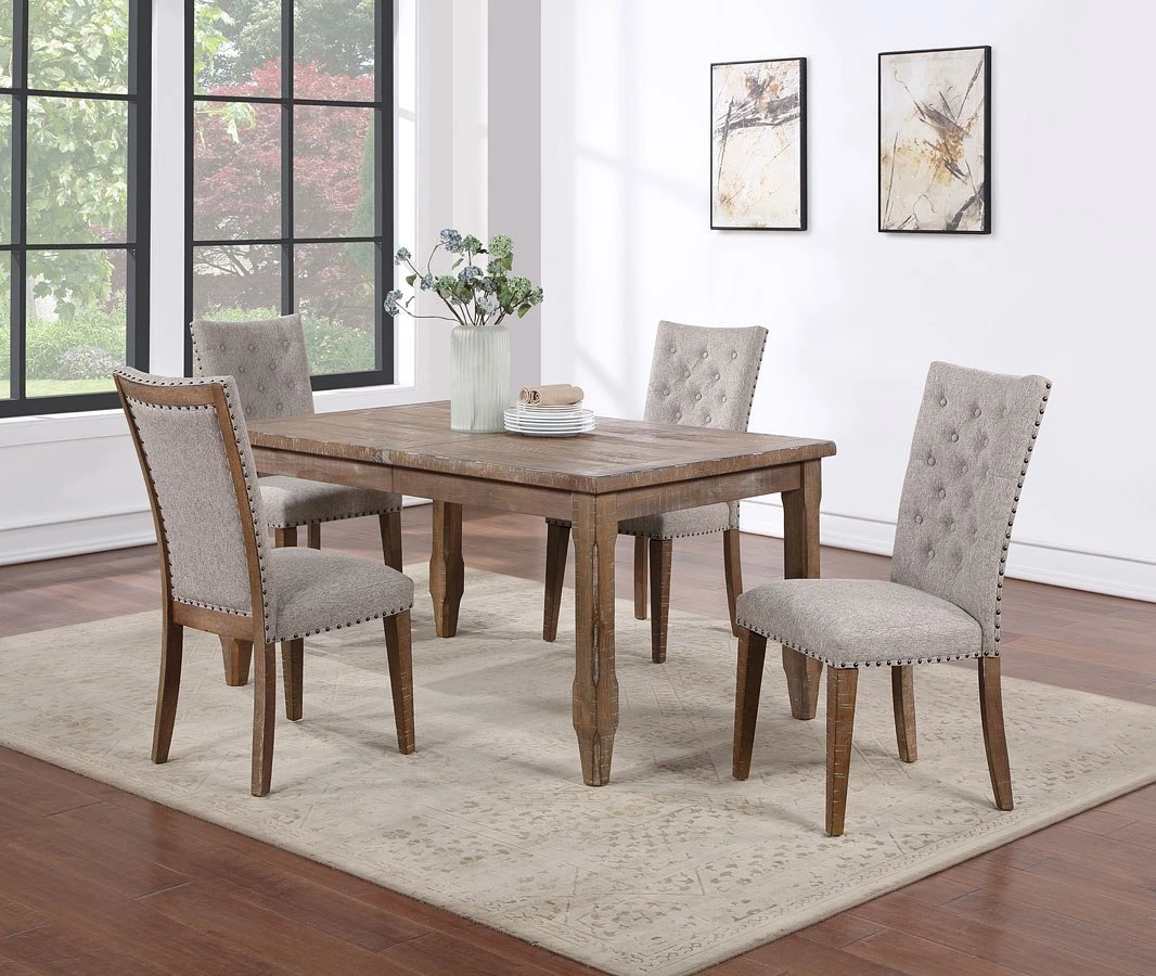 - Default Set Includes1 x Riverdale Rectangular Dining Table 4 x Riverdale Upholstered Side Chair 4 x Riverdale Side Chair