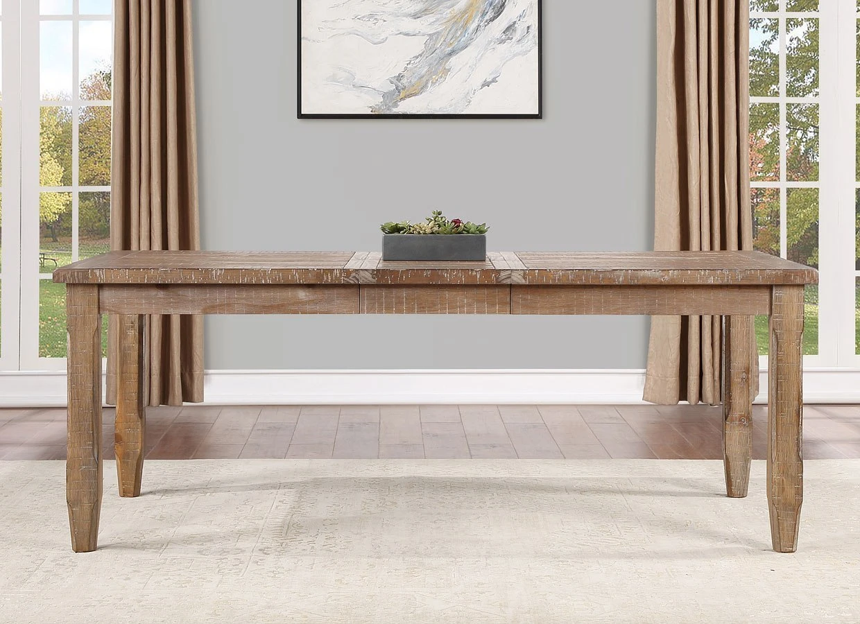 Heavy distressing including rasping and wormholes give the table a relaxed heirloom aesthetic