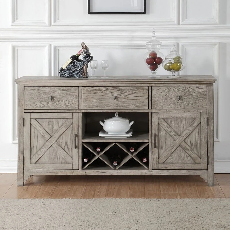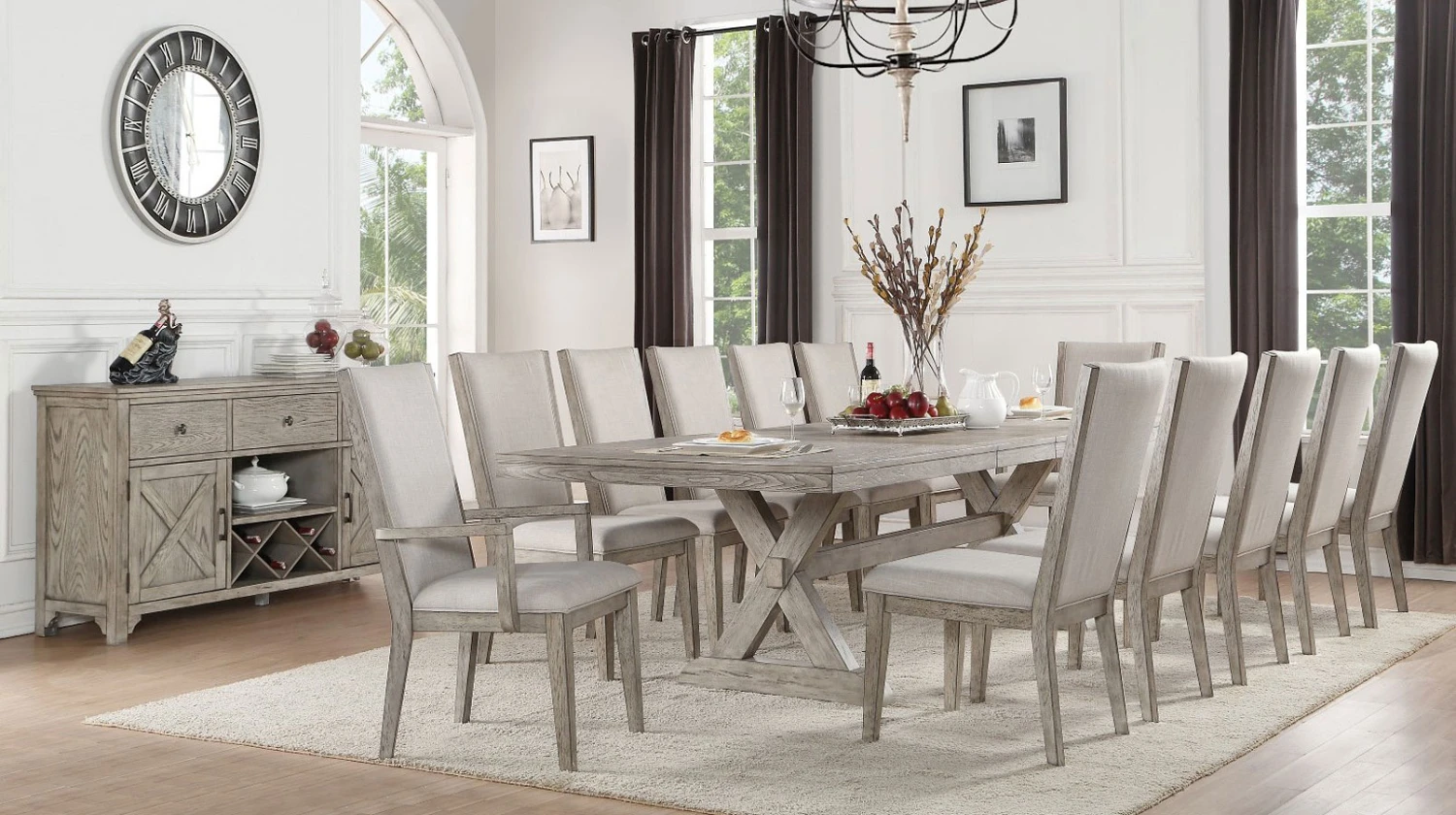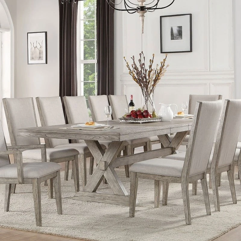 - OverviewThis Rocky Dining Room Collection by Acme Furniture will be an ideal set for any dining room. Featuring in a gray oak finish, the dining table with trestle base and its matching chair create a rustic style look to your dining space. A matching server with wine rack is also available to enhance your dining experience.