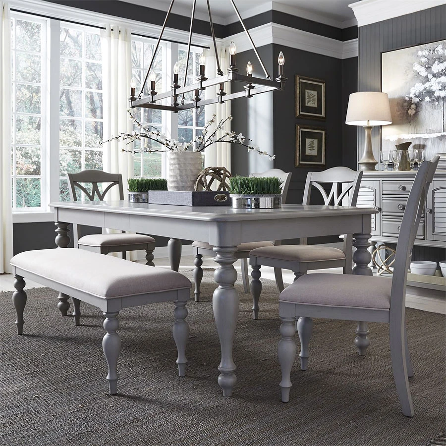 - OverviewCottage design is always in fashion. The Summer House Dining Room Collection by Liberty Furniture features the best of cottage style in a dove grey finish. The collection is crafted from poplar and pine solids and wood products. Transform your dining room with the casual style of the Summer House Dining Room Collection.