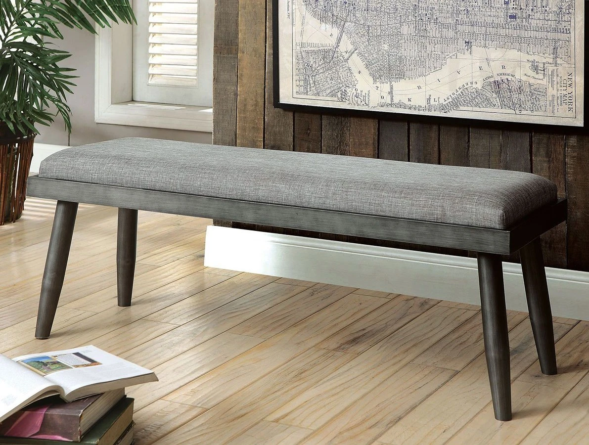 - OverviewBring a modern touch into the dining room with this eye-catchingly up-to-date Vilhelm Dining Room Collection by Furniture of America! Gray upholstery on the chairs and bench adds to the subtle yet trendy visual.