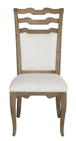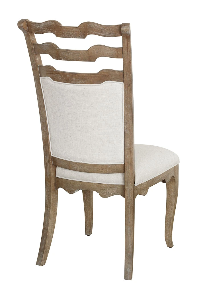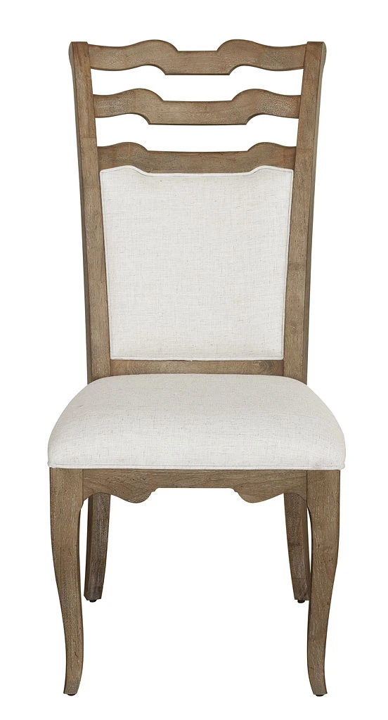 - OverviewFamiliar yet fresh, Weston Hills dining collection combines a casual attitude with traditional French flair. The stylish dining chairs feature open slats at the top of the seat back and a scalloped apron with Cabriole legs. The chair seat and seat back are upholstered in a neutral, linen texture fabric that works with any decor and color scheme in the home.