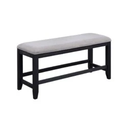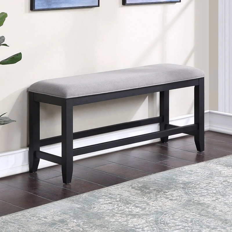 - OverviewThis solid wood Counter Bench by Steve Silver Furniture adds comfort and style to your modern-styled kitchen or dining area. Crafted of Rubberwood solids are finished In a lustrous charcoal finish that blends beautifully with the easy-to-match gray foam-filled fabric seat. This 24-inch high Counter Bench complement either Counter Height dining tables or 36-inch Kitchen Counters and features front and side stretchers to add comfort and strength to the frame. Seat multiple guests or children while adding a touch of modern style with the Yves Counter Bench.