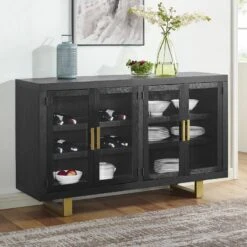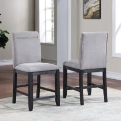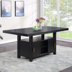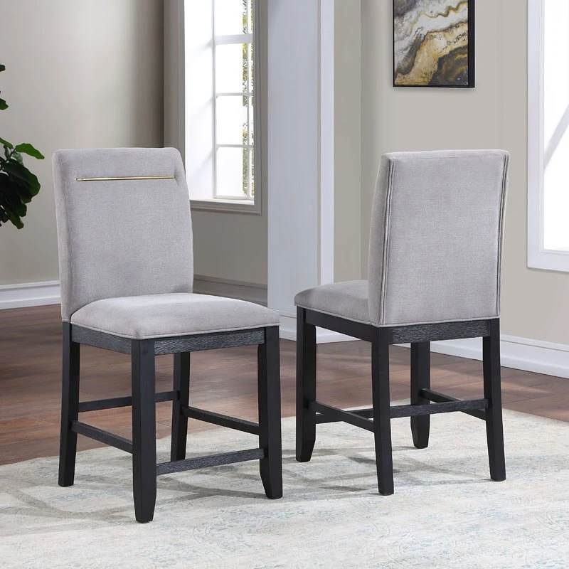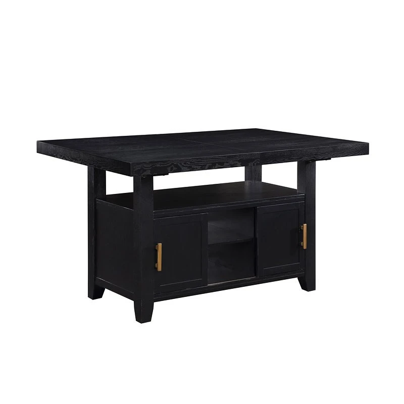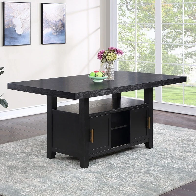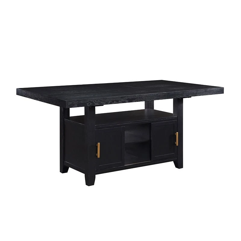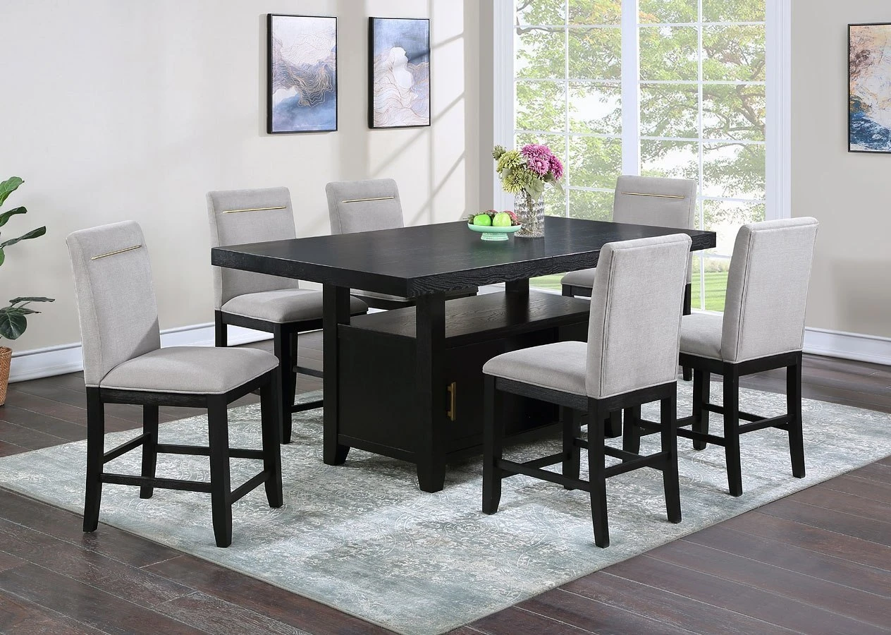 - OverviewThis Yves Dining Collection by Steve Silver Furniture combines style and storage in one beautiful package. Crafted of acacia veneers and hardwood solids in a lustrous charcoal finish, the Counter Storage Base offers both display and storage with the clean modern lines you will appreciate. Brushed brass accents offer a great complement to the Charcoal finish and are featured on hardware and on the back of the performance fabric chairs. The Counter Height table and chairs are a wonderful height for sitting and working and the seating can also be used on 36-inch height counters. Yves shows you do not have to sacrifice function for style in this Counter Height Dining ensemble!